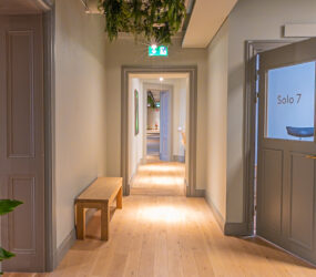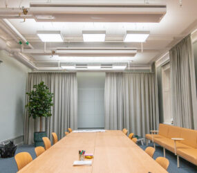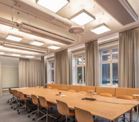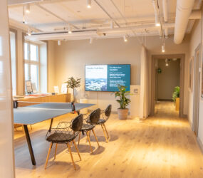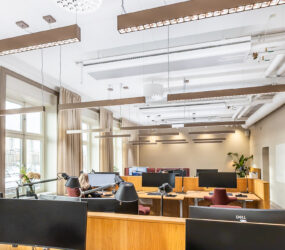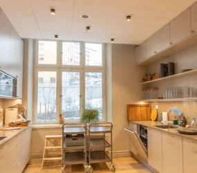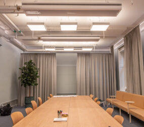 - Belysningen är anpassad efter de olika rummens funktion. Fullspektrum- och tunable white-belysning som följer en dygnscykel i de rum där fokuserat arbete sker.