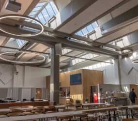 I detta projekt var fokus på att skapa en funktionell och trivsam ljusmiljö i atrium, matsalar och passager.